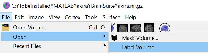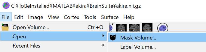 File→Open→Mask Volume...から〇〇.cerebrum.mask.nii.gzを選択します。