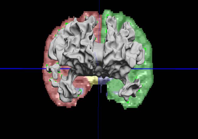 File→Open→Label Volume...から〇〇.init.cortex.mask.nii.gzを選択し、回転させます。
