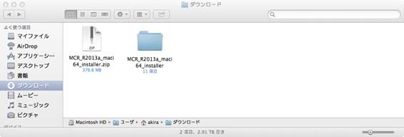 ダウンロードのMCR_R2013a_maci64_installer.zipとMCR_R2013a_maci64_installerフォルダは削除しても結構です。